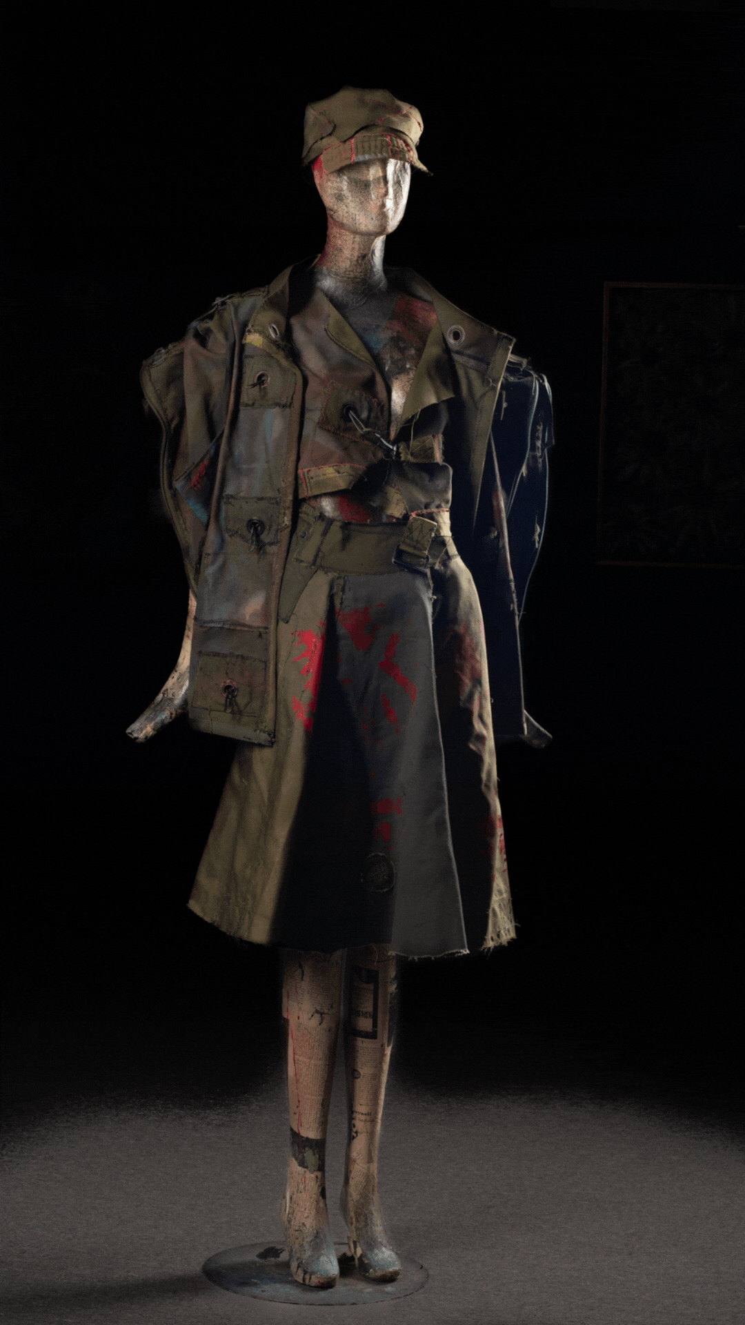 The cap, tilted and weathered, completes the figure as a soldier of collapse—not of empire, but of reclamation. This is post-apocalyptic regalia: militant yet human, uniform yet fractured, speaking of both control and survival in a world undone.